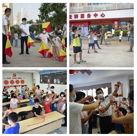 活动现场,海运学子进行旗语与擒敌拳表演,飒爽英姿引得众多小朋友前来观摩学习,博得小朋友阵阵热烈掌声。随后,海运学子引导家长及小朋友到教室里体验手动升帆出海,在实践中学习航海知识,了解海上救生方法,体验打绳结的多种系法,体验多样化航海文化,家长们带着小朋友乐于参与其中,活动接近尾声时,海运学子向小朋友们赠送了纪念品——船舶模型,希望通过这份纪念品在小朋友心中留下海洋文化的深刻印象。