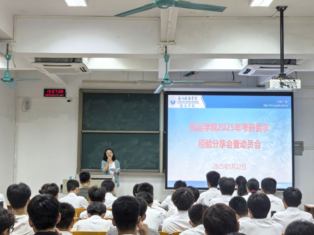经验分享时,被大连海事大学录取的崔星灿同学从考研目的、自身优势以及备考方法等方面进行了阐述;被上海海事大学录取的洪琬祺同学强调合理划分各科备考时间段的重要性,还介绍了专硕与学硕的区别以及跨专业考研需要面对的困难;被大连海事大学录取的黄婉琪讲解了考研择校的方法和经验;被暨南大学录取的聂元辉同学重点介绍了考试心态调整、专业课程学习方法以及资源获取渠道;被上海海事大学录取的伍盛辉同学分享了考研动机、复习规划以及时间管理的心得体会。此外,成功申请世界QS排名前100的英国利兹大学的方可同学,从学业规划、留学申请流程、专业选择以及中介机构选择四个方面进行了讲解。
