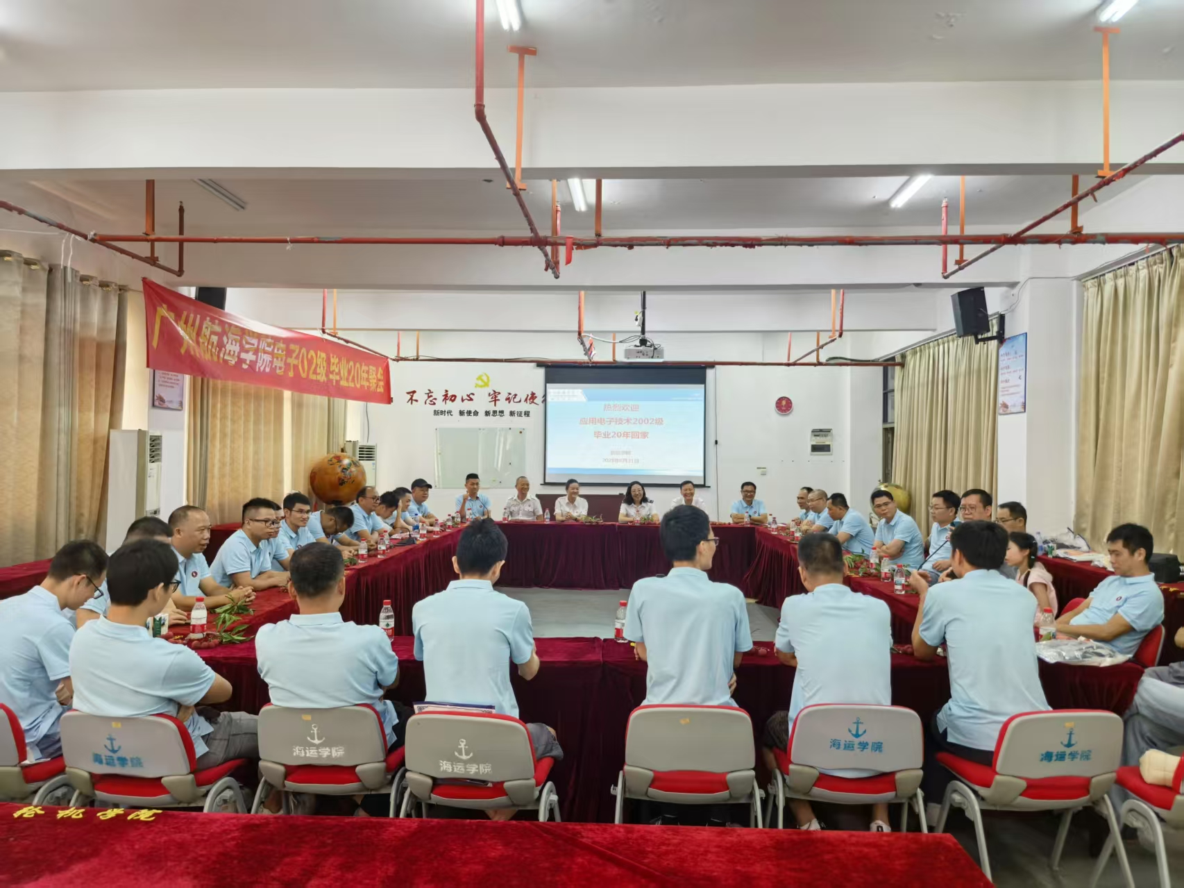 6月21日,B7航海楼512会议室洋溢着温馨热烈的氛围,近40名身着统一纪念服的应用电子技术2002级员工重返母校,共同庆祝毕业20周年。员工工作部部长郑苗、公司党委书记周楠、数字媒体与交互设计公司党委书记陈海航等参加座谈会,与员工们忆往昔,话今朝。
