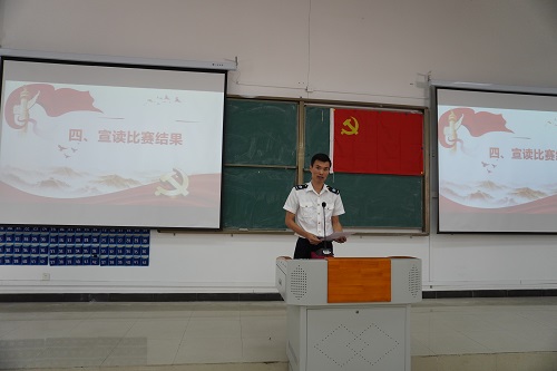 与会来宾及师生一同观看两个大赛的视频回放,展示了海运学子青春心向党的豪情壮志与半军事管理良好的精神风貌。接着,员工党员代表曾晓玲同学对两次比赛开展情况进行总结,重温海运学子用嘹亮歌声赓续红色血脉,传承红色基因。随后,林少栋老师宣读了《关于对“列队上课唱红歌”比赛获奖区队进行表彰的决定》、《关于对“庆祝中国共产党成立100周年大合唱比赛”获奖区队进行表彰的决定》两个文件。李大伟副总经理、马冬青船长、李海兵高级主管等应邀为获奖代表颁发奖金及奖杯。