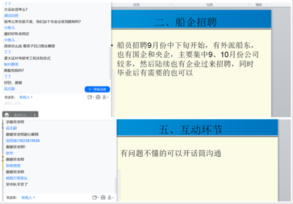 9月份开始,航海技术2019级将迎来航海类毕业就业招聘会、大证统考等,时间紧、任务重。本次召开家长线上会议,希望借助家长力量,协同做好员工的职业发展规划,力争使毕业生更充分、更高质量就业。
