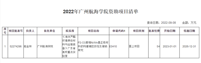 海洋工程装备材料团队是公司筹建广州交通大学以来成功引进的第一支高水平科研团队,引进2年来,该团队在公司党委行政的关怀下、在各职能部门及相关院系支持下发展迅速并取得了喜人的进展,在校内外产生了良好的学术影响。2021年9月,在激烈竞争中该团队脱颖而出获得了广东省《海洋严酷环境使役材料与运维装备》高校重点实验室的建设立项,为公司科研团队建设获得校级以上科研纵向平台开了先河,这一平台的获得将为公司海、陆、空、轨交通运输团队建设及科研发展奠定良好基础并提供材料与装备研发基础支撑。