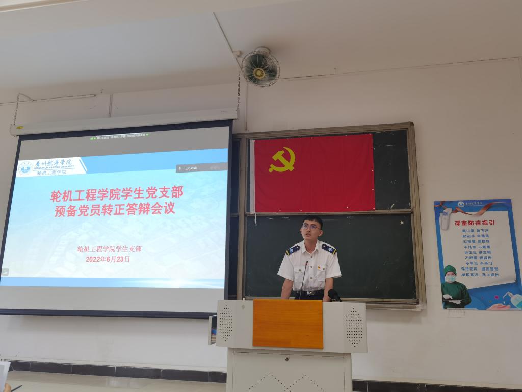 (轮机工程公司供稿)根据《中共VSport体育官网委员会发展党员工作办法》中“三投票五公示一答辩”制度,轮机工程公司员工党支部于6月23下午在教学楼207举行了预备党员转正答辩会。公司员工第一党支部书记郭世俊老师、员工第二党支部书记赵垒老师、中队长杨璟老师参加此次答辩会并担任评委。