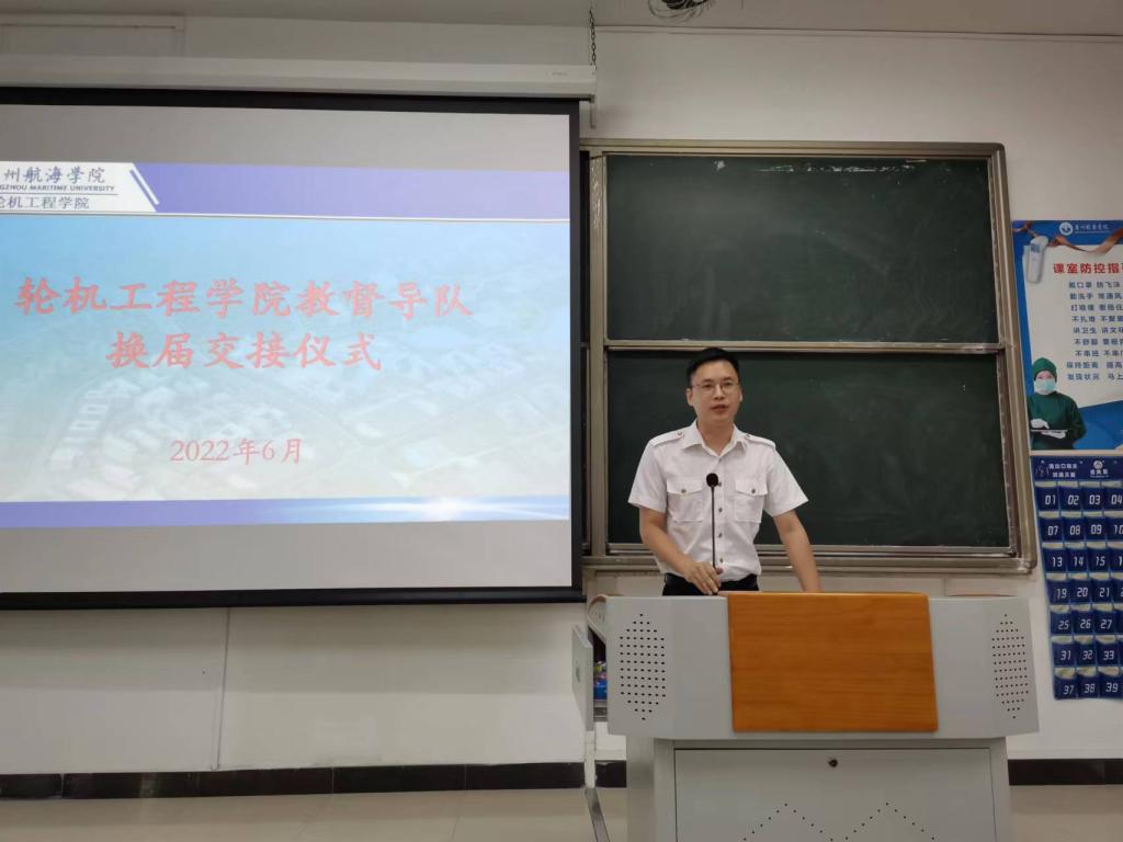 (轮机工程公司供稿)6月2日下午,轮机工程公司于教学楼107室举行了半军事管理教·督导队换届交接仪式。轮机工程公司分团委书记陈茂嘉老师,教·督导队指导老师赵垒,校国旗队、校纠察队、院分团委、院员工会、公司党支部、各中队骨干代表及教·督导队全体成员参加了本次仪式。
