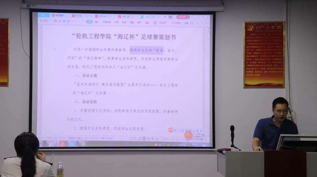 接着,会议对水运会筹备工作进行梳理和安排。陈老师首先介绍了本次水运会公司报名参赛情况,除了员工女子组外,员工男子组所有项目都报名参赛。陈老师要求团学干部,查漏补缺,做好组织和服务工作,保障我们的运动员顺利参赛,再创新佳绩。随后,陈老师对团学干部进行活动策划和活动通知的文稿撰写、组织工作的培训。最后,会议对正在筹划的“团干部讲团课比赛”、“轮机魅力Show”等活动进行进一步讨论和优化。